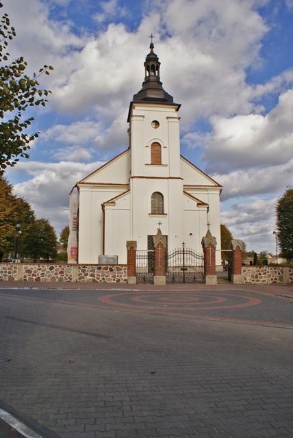 Klasycystyczny kościół Wniebowzięcia NMP (1861-1863, odbudowany 1944-1945).