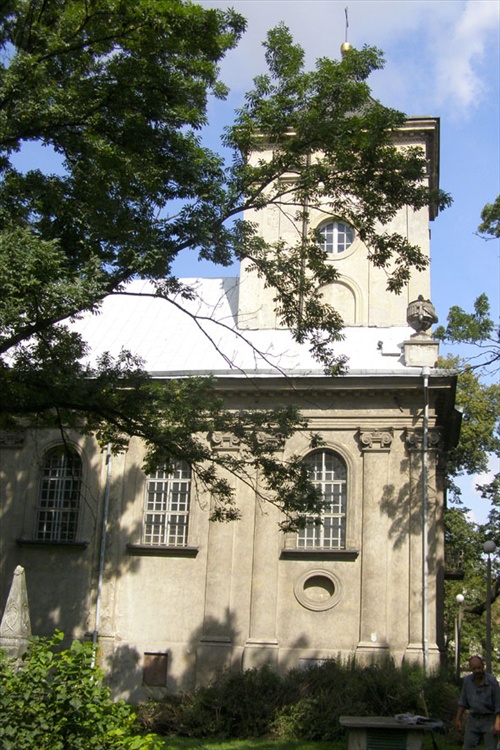 Kościół Świętej Trójcy, ewangelicki, klasycystyczny (1785-1788), rozbudowywany (XIX w.).