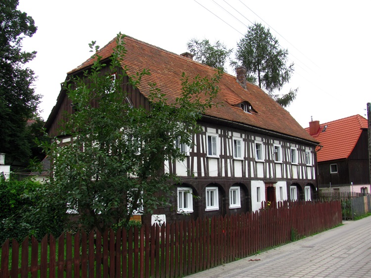 Dawniej na Łużycach w budownictwie wiejskim dominowały domy przysłupowe. Krótko opisując ten typ budynków można powiedzieć, że składały się one z dwóch konstrukcyjnie niezależnych od siebie części. Przyziemie, czyli parter chałup opasywały drewniane słupy, na których wznoszono ściany piętra krytego dwuspadowym dachem. Domy o takiej konstrukcji szczególnie chętnie były wznoszone przez tkaczy. Wstrząsy powstające przy pracy tkackich krosien dzięki przysłupom nie przenosiły się na górną kondygnację chałup. Zanim w okolicach Bogatyni zaczęto na przemysłową skalę wydobywać węgiel brunatny, mieszkańcy osady zajmowali się tkactwem. Domowe warsztaty od dawna już nie istnieją, pozostały za to przysłupowe domy dawnych rękodzielników. Żadna inna miejscowość w Polsce nie może równać się z Bogatynią pod względem liczby domów przysłupowych. W mieście i najbliższej okolicy ocalało kilkaset tego typu budynków. Stoją one nawet w centrum, np. przy ul. 1 Maja czy pl. Bohaterów Warszawy. Najładniejsze są te, których piętra mają szczytowe ściany wzniesione w konstrukcji szachulcowej. Wówczas pomiędzy malowanymi na czarno drewnianymi belkami szkieletu występuje tynkowany na biało szachulec, czyli glina z sieczką lub wiórami wypełniająca otwory "zbrojone" plecionką z gałęzi, co warto zobaczyć.