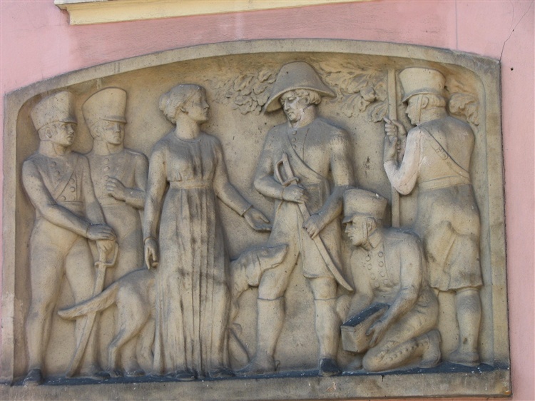 Bardzo pechowo zakończył się pobyt w Bolesławcu dla generała armii napoleońskiej le Bruna, stacjonującego tu z niewielkim oddziałem zimą 1806/07. Jak głosi legenda, 26-letnia bolesławianka, Rosalie von Bunin, powiadomiła wówczas księcia pszczyńskiego o możliwości ujęcia generała. Książę przydzielił jej oddział kawalerzystów, którzy po przybyciu do miasta pojmali le Bruna, przy okazji przechwytując kasę wojskową z 70 tys. talarów. Zdarzenie to upamiętnia płaskorzeźba umieszczona na wschodniej elewacji ratusza, przedstawiająca żołnierza w napoleońskim kapeluszu oddającego szablę młodej kobiecie.