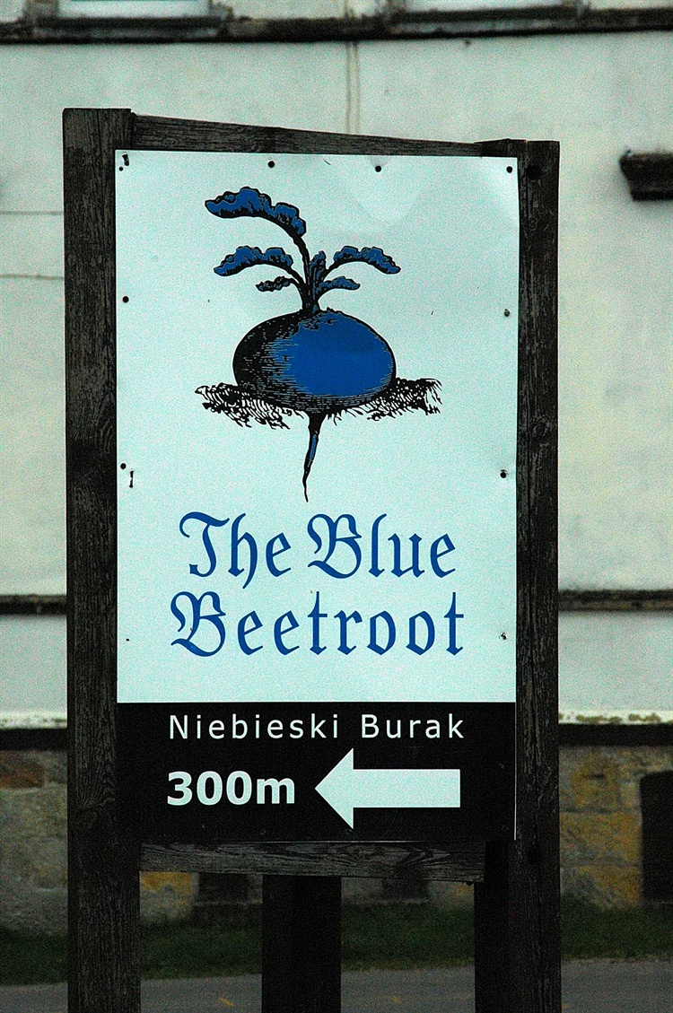 Państwo Alaszewscy kupili gospodarstwo rolne w Łaziskach i w XVIII-wiecznym budynku dawnej obory urządzili hotelik. Obiekt z pietyzmem wyremontowali. W tym celu nieodzownym był zakup ruin innego gospodarstwa. Materiał odzyskany z jego budynków posłużył do remontu The Blue Beetroot, czyli Niebieskiego Buraka. Tak w stylu angielskich pubów nazwali swój hotelik. Angielskim akcentem jest także szyld obiektu. W budynku świetnie wyeksponowano stare belki stropowe, piaskowcowe mury parteru i szachulcową konstrukcję piętra. Wnętrza robią na gościach całkiem "domowe" wrażenie, w pokojach są proste, wygodne sprzęty, w każdym znajduje się także łącze internetowe i sejf na kosztowności.