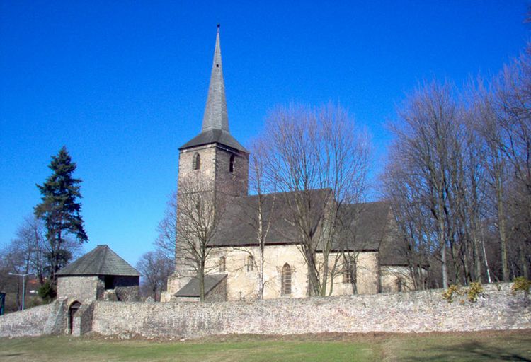 Kościół jest orientowany, z prostokątna nawą przykrytą drewnianym stropem wspartym na ciekawie zdobionych słupach. Interesująco prezentują się empory, których zasadnicza część pochodzi z 1562 r. Niezwykle okazały jest oryginalny romański portal przy wejściu do nawy, z motywem Drzewa Życia w tympanonie. Warto zobaczyć dobrze zachowane na ścianach świątyni piaskowcowe epitafia i płyty nagrobne - przeważnie z XVI w. Na uwagę zasługują również kamienna chrzcielnica oraz mensa ołtarzowa, w której w 1997 r. odkryto kamienny relikwiarz.