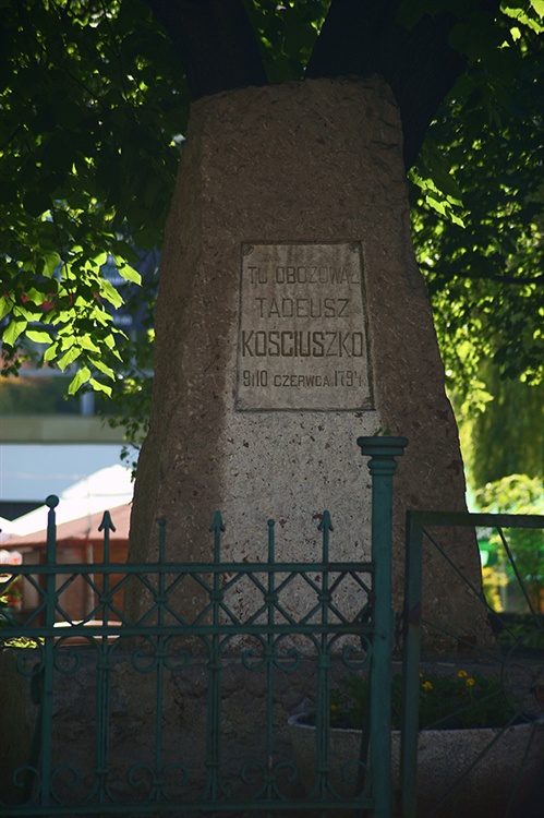 Monument upamiętniający pobyt i obozowanie w tym miejscu w dniach 9 i 10 czerwca 1794 roku Tadeusza Kościuszki wraz z wojskami insurekcyjnymi. Pomnik wykonany został z dużego kamienia granitowego, pośrodku wykuto litery inskrypcji. Dookoła niskie ogrodzenie z kutego żelaza. Pomnik znajduje się przy ulicy Kościuszki.