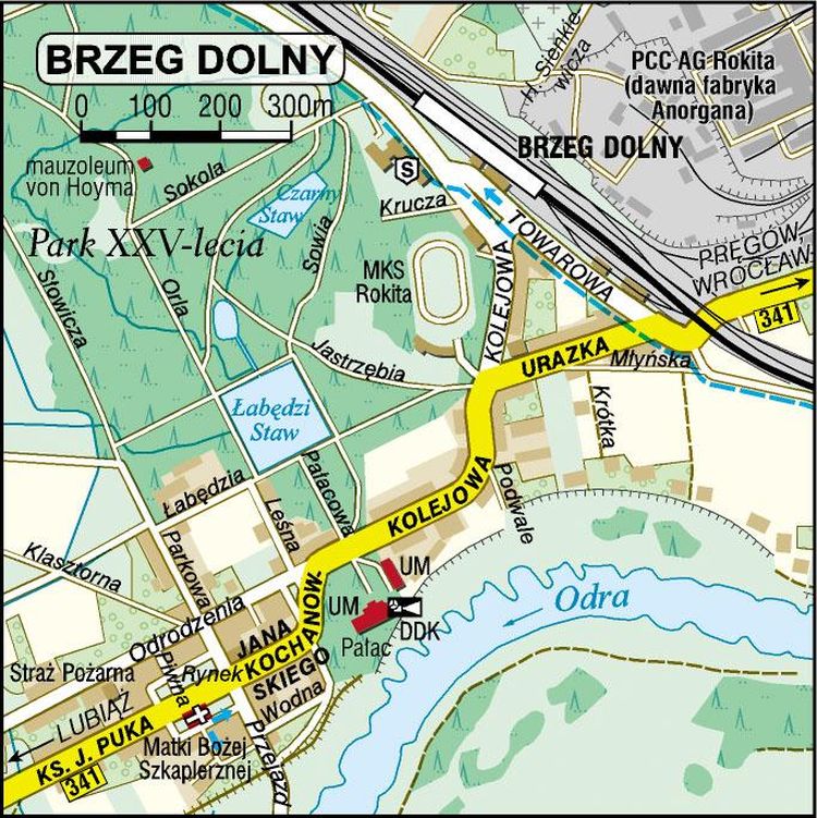 Karol Jerzy von Hoym objął w posiadanie dobra w Brzegu Dolnym poprzez ożenek z hrabianką Antoniną Luizą von Dyhrn und Schönau, pochodzącą z rodu założyciela miasta, barona Jerzego Abrahama von Dyhrna. Od jego nazwiska pochodziła niemiecka nazwa Brzegu Dolnego - Dyhernfurth. Karol Jerzy von Hoym dał się poznać jako wybitny administrator. Był pruskim ministrem do spraw Śląska. Przyczynił się w niekwestionowany sposób do rozwoju śląskich kopalń i hut, unowocześnił rolnictwo, szkolnictwo, zainicjował budowę dróg. Szacunek wśród mieszkańców zyskał dzięki aktywnej postawie w walce z klęską głodu, jaka dotknęła Śląsk w 1804 r. Przejęty po poprzednich właścicielach pałac w Brzegu Dolnym, w latach 1770-1775 von Hoym przebudował na okazałą rezydencję. Autorem projektu nowego pałacu i rozległego parku był Karol Gothard Langhans, znany królewski architekt, twórca m.in. berlińskiej Bramy Brandenburskiej. Z tego chociażby powodu pałac warto zobaczyć. W samym środku parku, zajmującego bardzo dużą część centrum Brzegu, znajduje się kolejna atrakcja turystyczna - obiekt przypominający antyczną świątynię. To mauzoleum von Hoyma powstałe w 1802 r. według projektu innego sławnego berlińczyka, Fryderyka Gilly’ego. W 1807 r. spoczął w nim po śmierci zasłużony minister prowincji śląskiej. W 1945 r. pałac von Hoymów spłonął. Po nieudanej powojennej odbudowie nie odzyskał w pełni dawnego wyglądu magnackiej siedziby. Jest dziś siedzibą Urzędu Miejskiego i Dolnobrzeskiego Domu Kultury. Ocalał w zdziczałej formie olbrzymi park. Mauzoleum von Hoyma nie oparło się wandalom. Gdyby nie paskudne sprayowe bohomazy na ścianach i doryckich kolumnach, ruiny kaplicy grobowej mogłyby uchodzić za romantyczne ruiny, element założenia pałacowo-parkowego.