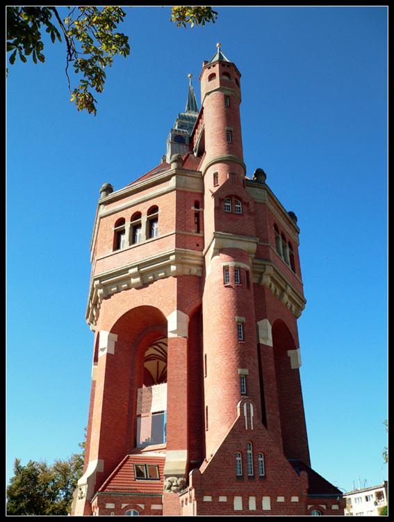 Przez swój baśniowy wygląd należy z pewnością do najpiękniejszych zabytków we Wrocławiu, które warto zobaczyć odwiedzając to miasto. Wieża ciśnień, która wygląda jak średniowieczny zamek z cegły, stoi na skrzyżowaniu ulic Wiśniowej i Sudeckiej. Została zbudowana w latach 1903-1904 według projektu Karla Klimma. Ozdobiły ją płaskorzeźby z piaskowca i fontanna z postacią trytona. Budynek wieńczą dwie wieżyczki, z których jedna mieści szyb windy, w drugiej zaś znajdowała się platforma widokowa.