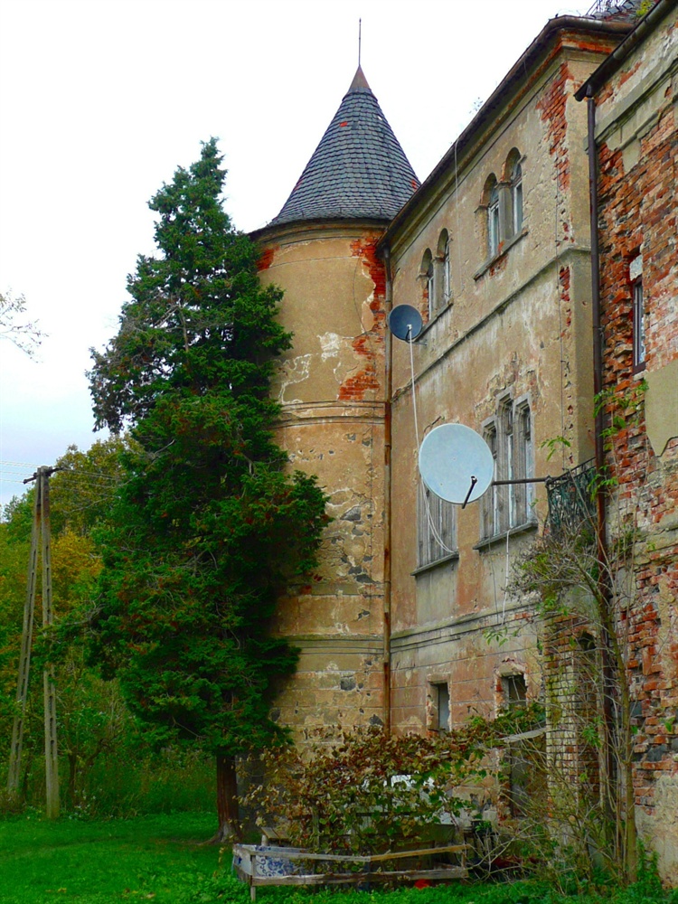 Obecna forma pałacu jest wynikiem przebudowy z lat 1841- 44 kiedy to podwyższono budynek o jedną kondygnację i dobudowano wieżę południowo-zachodnią. W XIX wieku elewacje pałacu otrzymały wystrój eklektyczny i neogotycki. Do pałacu przylega park z pięknym starodrzewiem. Obecnie park jest bardzo zaniedbany. Według przedwojennych przewodników w parku znajdowały się stare rzeźby i mauzoleum. Niestety nie ma po nich już śladu.