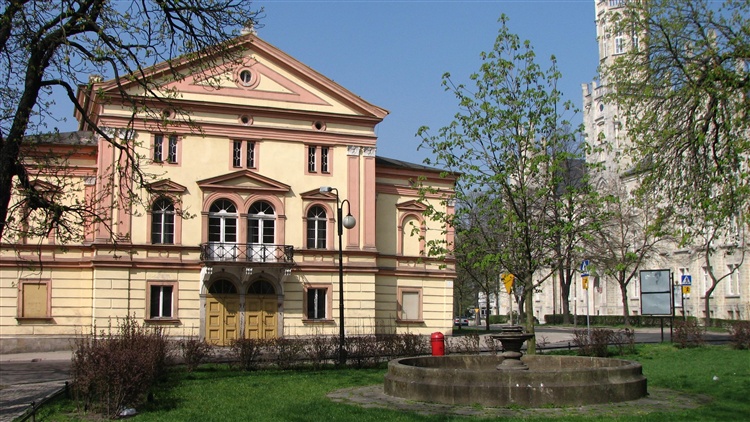 Klasycystyczny budynek dawnego arsenału miejskiego został wzniesiony w 1822 roku. Budynek stoi przy ulicy Teatralnej 1, przy promenadzie otaczającej stare miasto. W latach 1855-1856 budynek arsenału przebudowano na teatr. Otwarcie teatru odbyło się w grudniu 1857 roku. W 1913 roku odbyła się kolejna przebudowa która miała na celu rozbudowę części scenicznej i orkiestrowej. Teatr funkcjonował do 1944 roku.
