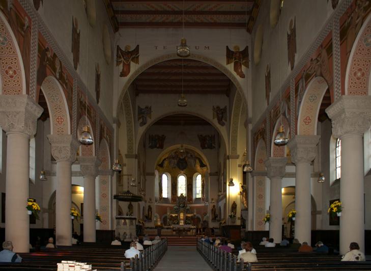 Neoromański kościół św. Jacka (1908-1915) z dwuwieżową fasadą, wzorowany na katedrze w Limburgu.