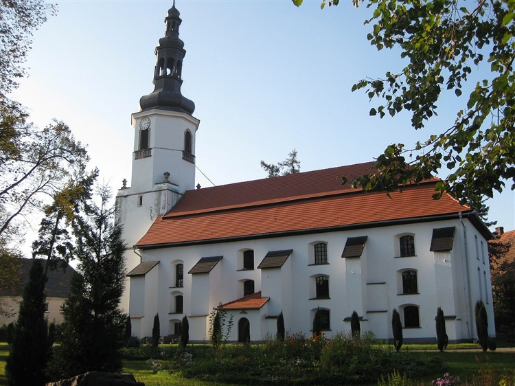 Kościół św. Jana Nepomucena (XIII w., przebudowany XVI, XVIII w.), przejściowo ewangelicki. Plebania (1700)