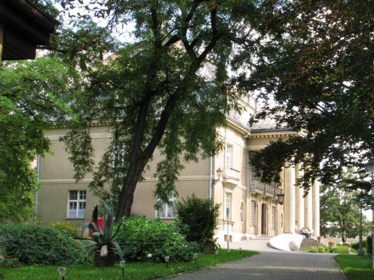 Zespół pałacowy (1844): pałac, park z aleją dojazdową, budynki gospodarcze.