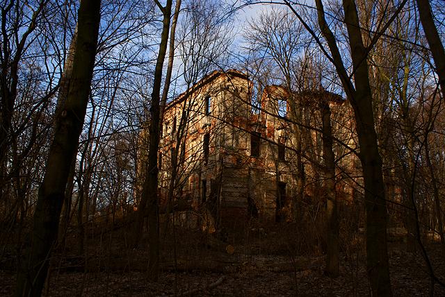 Pałac wzniesiony został ma przełomie XVI i XVII wieku. W latach 1722-1723 został on powiększony oraz przebudowany z polecenia Hansa Georga von Stoscha o ryzalit południowy. W II poł. XIX w. został odrestaurowany. Fasada budynku posiadała cechy baroku wiedeńskiego, co potwierdza przypuszczenia historyków sztuki, że twórcą rzeźb był artysta Ignaz Müller. Pałac otoczony był fosą z barokowym mostkiem z 1722 r., który niestety nie przetrwał do dnia dzisiejszego oraz parkiem krajobrazowym. W 1947 r. pałac spłoną i do dnia dzisiejszego nie został odbudowany.