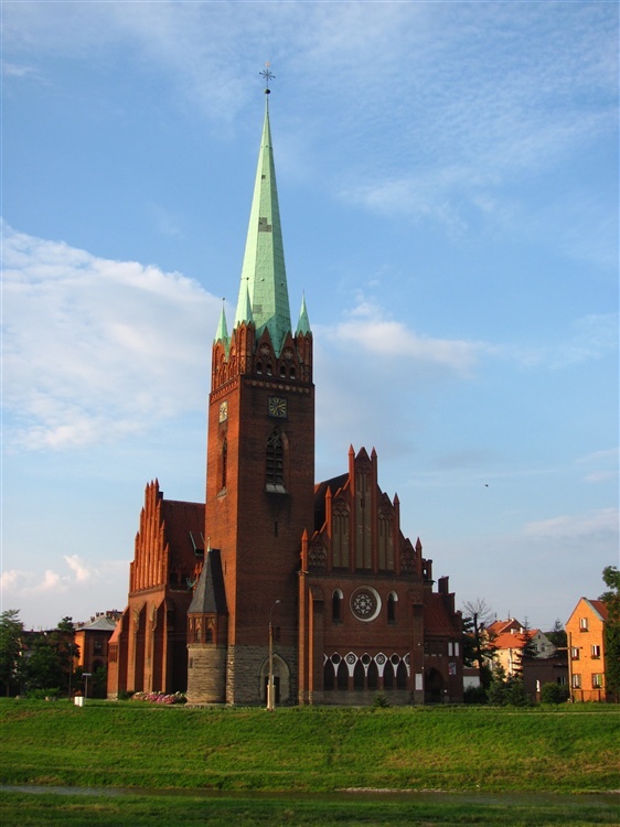 Ewangelicki kościół przy ulicy Nadbrzeżnej wzniesiono w latach 1905-1908 na cześć cesarza Fryderyka III. Kościół budowany był w stylu neogotyckim według projektu niemieckiego architekta Friedricha Oskara Hossfelda. Obecnie jest to parafialny kościół rzymsko-katolicki p.w. św. Jacka Odrowąża.
