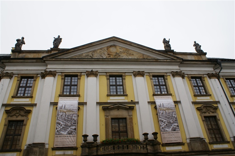 Budynek dawnej Akademii Rycerskiej wznoszony był etapowo. Na początku w 1709 r. powstało skrzydło zachodnie według projektu włoskiego architekta Juliusza Simonettiego. Kolejne skrzydła budynku zaprojektowane przez wiedeńskiego architekta Antonia Erharda Martinellego powstały w latach 1728-1738. W wyniku wojen śląskich i zajęcie śląska przez Prusy przerwano rozbudowę Akademii Rycerskiej. Ostatnie skrzydło północne wzniesione zostało dopiero w 1804 roku.