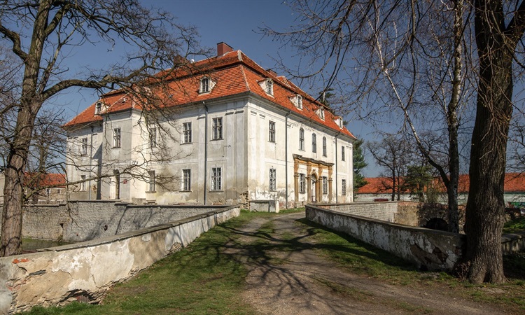 Pałac (XVI/XVII w. przebudowany XVIII w.). Pozostałości pałacowego parku
