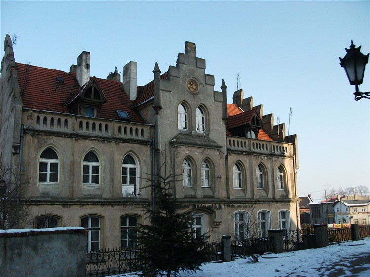W pobliżu kościoła św. Katarzyny Aleksandryjskiej, tuż przy murach miejskich, stoi charakterystyczny budynek dawnego sierocińca (niem. Waisenhaus) z XIX w. Neogotycka budowla o trzech kondygnacjach posiada połączenie z wyżej położonym kościołem w postaci galerii na wysokości pierwszego piętra. Fasady boczne oraz ryzality w elewacjach frontowej i tylnej zwieńczone są szczytami schodkowymi. Na wyższych kondygnacjach znajdują się typowe dla gotyku okna ostrołukowe. Sierociniec jest obecnie mieszkalnym budynkiem wielorodzinnym.