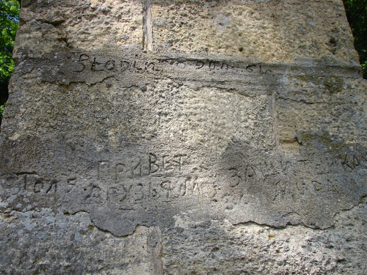 Oryginalną atrakcją turystyczną miejscowości jest pamiątka po pobycie Rosjan w Kamieniu Śląskim - napis pozostawiony na filarze bramy pałacowej, którą można przejść na teren sanatorium Sebastianeum Silesiacum. W zaprawie łączącej kamienne bloki ręka żołnierza lub żołnierki wydrapała po rosyjsku napis: "Pozdrowienia dla przyjaciół, obrońców pokoju!". Czyżby piszący to internacjonalistyczne hasło czuł na sobie spojrzenie oficera politycznego? Trudno uwierzyć w szczerość intencji piszącego, podobnie jak trudno się nie uśmiechnąć próbując sobie wyobrazić dzisiejszego graficiarza (nawet w mundurze), który maluje sprayem na ścianie podobnej treści hasło.