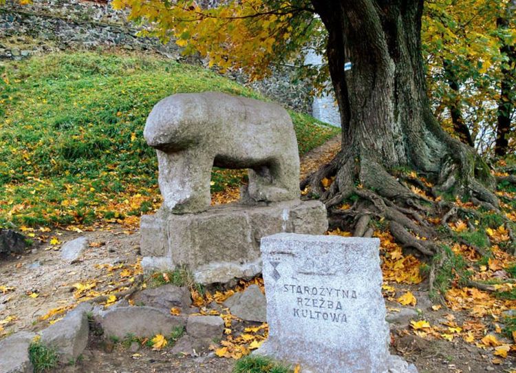 Sobótka i jej okolice kryją wiele tajemnic. Najstarsze z nich związane są z kamiennymi rzeźbami. Już przy drodze do schroniska pod Ślężą czeka "mnich". Jeszcze w okresie międzywojennym u jego stóp mieszkańcy składali ofiary z żywności, co wiązało się prawdopodobnie z prastarym kultem zmarłych. Mnicha obrzucano też kamieniami, podobnie jak kolejną figurę, niedźwiedzia stojącego na szczycie góry. Ten stary pogański zwyczaj miał przynosić szczęście. Pod samym wierzchołkiem góry mieszka natomiast panna z rybą. Legenda mówi, że to służąca, która karmiła niedźwiedzia trzymanego w ogrodach zamku na górze. Codziennie rano schodziła do Sobótki, żeby przynieść misiowi świeże ryby. Ale pewnego dnia zwierzę wydostało się poza mury, zbiegło w dół i trafiło prosto na wracającą pannę. Dziewczyna znała dobrze niedźwiedzia i wcale się go nie bała. Wyjęła z kosza rybę, podsunęła misiowi pod nos i... schowała z powrotem. Wściekły zwierzak rzucił się na służącą i odgryzł jej głowę. Następnie zjadł co znalazł w koszyku i uciekł w las. Na wieść o tragedii księżna ze Ślęży kazała wykuć w granicie figurę dziewczyny i niedźwiedzia, wszyscy zaś wyciągnęli z tej historii naukę, że z silniejszym, a do tego głodnym, droczyć się nie należy... Równie intrygująca jest opowieść o kamiennej figurze, która stoi przy kościele św. Anny w Sobótce. Dawno temu pewien mnich wybrał się w daleką drogę. Była ostra zima, dookoła grasowały wilki. Jeden z wygłodniałych drapieżników napadł na wędrowca, zaś ten bez zastanowienia wyciągnął nóż i uderzając nim na oślep, zaczął uciekać w stronę Garncarska. Rozwścieczony wilk nie dawał za wygraną, biegł mimo ran i dopiero kilkaset metrów od wsi padł cały we krwi. Pamiątką po tym zdarzeniu jest kamienna rzeźba, którą postawiono w miejscu "egzekucji", a następnie na początku XIX w. przeniesiono pod domek pewnego mieszkańca Garncarska. O dziwo, ów mieszkaniec miał na nazwisko... Wolf. Dziś wilk znany jest jednak jako lew. Naukowcy spierają się od lat o pochodzenie tych figur. Niektórzy twierdzą, że mogą to być wyobrażenia pogańskich bogów, inni uważają, że to rzeźby celtyckie lub znaki graniczne z XII w. Na figurach zostały głęboko wyryte ukośne krzyże. Obecnie znanych jest 15 takich znaków, znalezionych również na skałach i głazach. Część naukowców dowodzi, że to symbole słońca, inni - choć jest to hipoteza dość fantastyczna - że to runy odpowiadające symbolowi "g", skrótowi od "gebu", który oznacza dar składany albo otrzymywany od bogów. Mogą to być również średniowieczne znaki poszukiwaczy skarbów lub krzyże wykute w celu wyświęcenia pogańskich miejsc kultu. Niektórzy badacze skłaniają się natomiast ku teorii, że symbole na skałach to po prostu starodawne znaki graniczne albo rodzaj dowcipu, za pomocą którego zamierzano "postarzyć" figury.