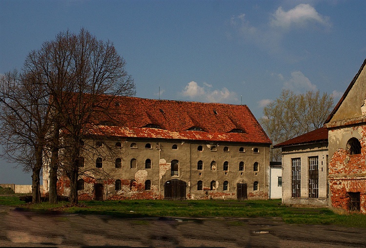 Do pałacu należą dobrze zachowany zespół folwarczny wybudowany w stylu późnoklasycystycznym w 1840 roku. Na jednym z budynków gospodarczych wbudowane są płyty upamiętniające właścicieli całego majątku