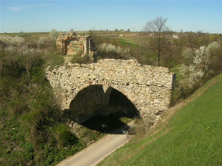 Kanclerz Wielki Koronny Jerzy Ossoliński (1595-1650) wzniósł w Ossolinie rezydencję na miarę swej pozycji. Późnorenesansowy zamek stojący na malowniczym wzgórzu połączony był z zabudowaniami gospodarczymi na przeciwległym wzgórzu pięknym arkadowym mostem. Wnętrza urządzono z niezwykłym przepychem. Gdy w 1780 r. Ossolin przeszedł w ręce rodziny Ledóchowskich, niezamieszkany zamek zaczął popadać w ruinę. Przez pewien czas był użytkowany jako spichlerz. W 1816 r. Antoni Ledóchowski, nowy właściciel, rozkazał wysadzić zamek w powietrze. Jak głoszą przekazy, zrobił to w trosce o morale swych synów, by nie zaciągali karcianych i pijackich długów pod zastaw rodowej siedziby. Dziś po wspaniałej rezydencji kanclerza Ossolińskiego pozostała tylko arkada mostu.