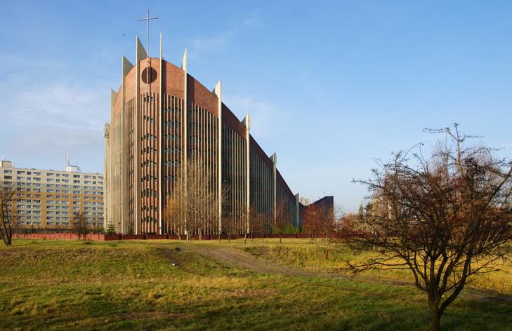 Z oddali wygląda jak głowa gigantycznego wieloryba wyłaniającego się z odmętów, którą z jednej strony pokrywa ciemna, niemal czarna skóra. Z drugiej piętrzą się pionowe elementy podobne do fiszbinów otwartej paszczy. Kościół pw. Nawiedzenia NMP w dzielnicy Rataje zadziwia wielkością, niepowtarzalną formą i śmiałością konstrukcji. Jego wielkość po części jest zasługą... władz miejskich z czasów PRL-u. W latach 70. XX w. decydenci nie zgadzali się na budowę kościołów na poszczególnych osiedlach Ratajów. Pozwolenie wydali dopiero w 1976 r., gdy władze kościelne przedstawiły projekt jednej wielkiej świątyni, która miała służyć 120 tys. mieszkańców. Zgodę wydano w przekonaniu, że nie uda się zrealizować tak ogromnego i kosztownego przedsięwzięcia. Budowę dwupoziomowej świątyni rozpoczęto w grudniu 1979 r.