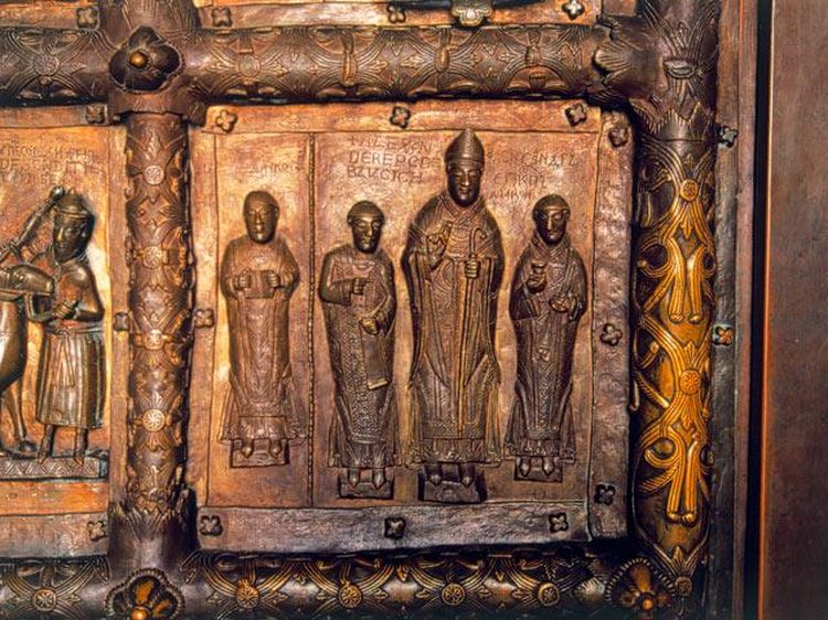 Wspaniałe drzwi płockiej katedry są tylko kopią XII-wiecznych drzwi romańskich odlanych z brązu, które w Magdeburgu wykonano na zamówienie biskupa płockiego Aleksandra. W katedrze płockiej zostały zamontowane najpóźniej w 1156 r. Nie wiadomokiedy i w jaki sposób trafiły do Nowogrodu Wielkiego. Według jednej z hipotez na początku lat 80. XII w., podczas walk domowych toczonych na Mazowszu z udziałem Prusów i Jaćwingów, zostały one zrabowane z Płocka i znalazły się w Sigtunie, ówczesnej stolicy Szwecji. W 1187 r. podczas wojny republiki Nowogrodzkiej ze Szwecją, Sigtuna została zdobyta i splądrowana, a drzwi płockie trafiły jako łup do Nowogrodu Wielkiego, gdzie zostały zamontowane w soborze św. Zofii i gdzie znajdują się do dziś. Tę wersję potwierdza fakt, że w Nowogrodzie drzwi płockie zwane są sigtuńskimi.