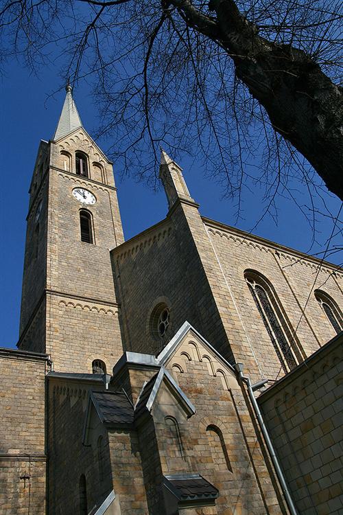 Neogotycki kościół św. Andrzeja Apostoła (1863-1866) z kaplicą (1895-1896) i wieżą frontową.