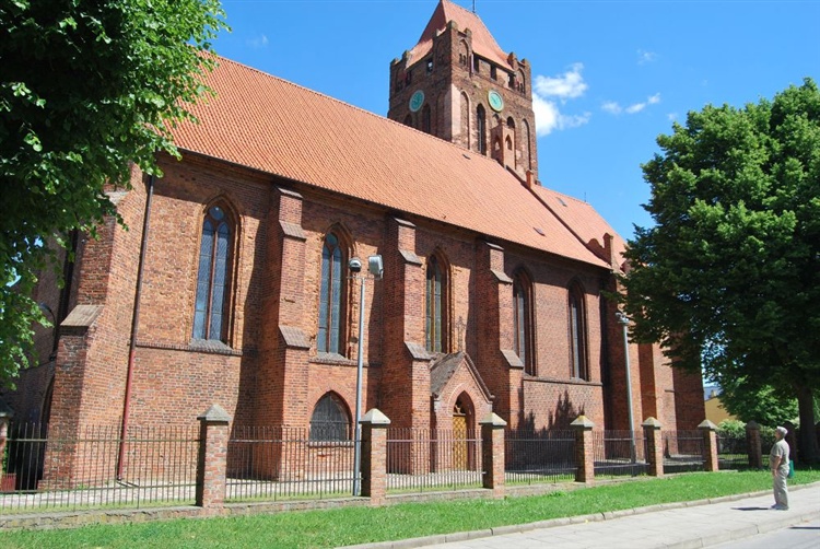 Ta górująca nad miastem świątynia została wybudowana w XIV wieku na wzór konkatedry kwidzyńskiej. Przebudowana w połowie XIX wieku doznała poważnych zniszczeń w czasie II wojny światowej. Odbudowana dopiero w latach osiemdziesiątych XX wieku, od 1992 jest konkatedrą diecezji elbląskiej.