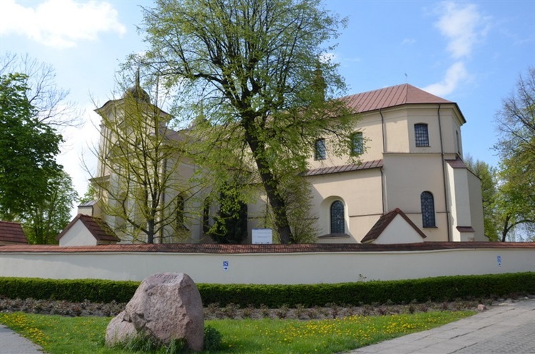 Nad głównym wejściem ciekawa XVIII w. rzeźba Matki Boskiej Niepokalanego Poczęcia. We wnętrzu barokowy (drewniany) ołtarz główny i 16 ołtarzy bocznych. Warta uwagi jest siedemnastowieczna kamienna kropielnica oraz ambona z XVIII w. Niezwykle interesujące są kościelne krypty. W jednej z nich pochowany został Franciszek Zabłocki (proboszcz tutejszej parafii i komediopisarz, autor m.in. Fircyka w zalotach)