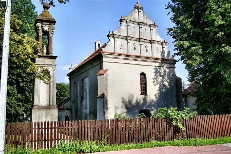 Początki kościoła sięgają przełomu XVI i XVII wieku, kiedy to znajdująca się w tym miejscu drewniana kapliczka popadła w skrajną ruinę. W 1603 roku, tutejsze tereny wizytował jeden z biskupów i zalecił jej rozebranie. Wtedy to rozpoczęto starania związane z wybudowaniem nowej świątyni. Większość środków na postawienie nowego kościoła przekazała córka marszałka koronnego - Gertruda z Bnia Opalińska. Była ona małżonką Jana Firleja, właściciela majątku w niedalekiej Dąbrowicy.
