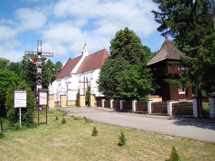 Będąc w kościele warto zwrócić uwagę na ciekawe rozwiązanie architektoniczne, a mianowicie wsparcie żeber sklepienia nawy na jednym, centralnym filarze. Z kolei w otoczeniu kościoła wyróżnia się drewniana dzwonnica typu obronnego z przełomu XVII i XVIII w.