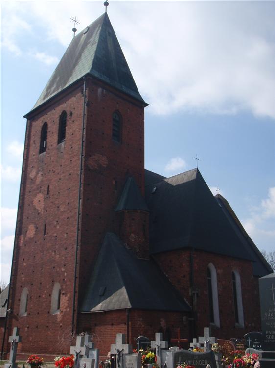 Legenda głosi, że kościół został założony z inicjatywy św. Jadwigi Prawdopodobnie jednak jego fundatorem było biskupstwo wrocławskie. Na początku XVI wieku stary drewniany kościół został przebudowany. Prawdopodobnie w 1538 roku ukończono budowę nowej murowanej świątyni. W latach 1690-1702 kościół został przebudowany otrzymując wystrój barokowy. Wewnątrz warto zwrócić uwagę na organy z 1746 roku. W latach 1913-1916 kościół rozbudowano nadając obecny neogotycki wygląd.