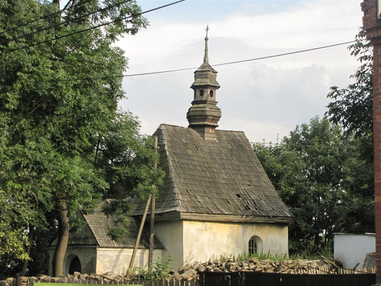 Ciekawy architektonicznie jest jego wysoki dach pokryty gontem, zwieńczony wieżą na sygnaturkę. Kościółek posadowiony na skarpie, otoczony starym murem z bramką. Odrestaurowany w latach 1914-1919 r. Został uszkodzony w czasie II wojny światowej po wojnie przeszedł generalny remont.
