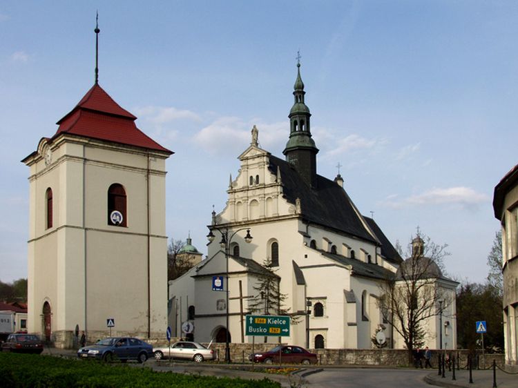 Przed kościołem stoi imponujących rozmiarów barokowa dzwonnica, wzniesiona w końcu XVII w. Umieszczone są na niej stare dzwony; jeden z nich ufundował biskup Oleśnicki.