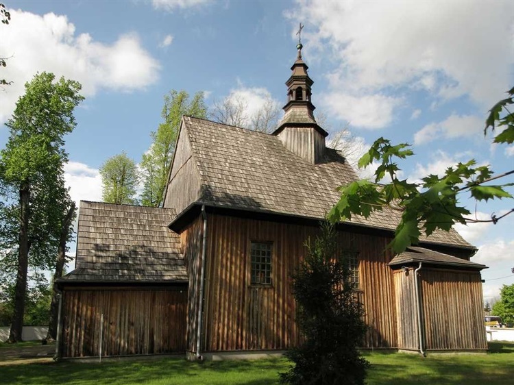 Drewniany kościół parafialny NMP (XVI w., przebud. XVIII w.) z figurą Chrystusa Frasobliwego, konstrukcji zrębowej. W centralnej części wsi znajduje się zadbany rozległy rynek z kaplicą, przypominający swym charakterem i spokojne i zapomniane miasteczko. Rokrocznie w dniu uroczystości Wniebowzięcia Najświętszej Maryi Panny, 15 sierpnia, na Placu Rynkowym odbywa się huczny jarmark.