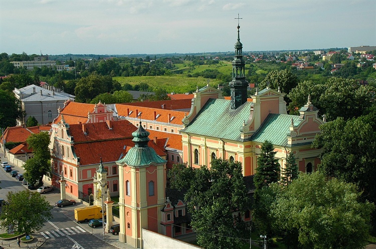 Barokowy kościół św. Michała z zespołem dawnego klasztoru benedyktynek wzniesiono w latach 1686-92, a w latach 1753-69 obiekt był remontowany. Kościół jest jednonawowy, nakryty sklepieniami kolebkowo-krzyżowymi podtrzymywanymi przez zdwojone, jońskie pilastry. We wnętrzu, częściowo zniszczonym przez pożar w 1966 r., warto zobaczyć zachowaną piękną, rzeźbioną ambonę z XVII w. Późnobarokowa dzwonnica pochodzi z lat 1749-50. Trzyskrzydłowy klasztor był budowany etapami, od 1633-37 (skrzydło pd.) do 1903-06 (skrzydło pn.). W klasztorze zachował się bardzo bogaty zespół tkanin z XVII-XVIII wieku. Zespół pobenedyktyński stanowi znakomity przykład polskiej barokowej architektury klasztornej. Od 1903 r. mieści się tutaj Wyższe Seminarium Duchowne.