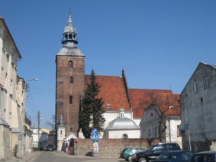 Tradycja wiąże budowę kościoła z panowaniem Kazimierza Wielkiego. W tym czasie powstał nowy kościół gotycki, pochodzący z przełomu XIV i XV wieku. Przechodził liczne przeróbki i uzupełnienia. Dzwonnica pochodzi z początku XV w. Jest to kościół jednonawowy, z węższym i niższym prezbiterium. Do zamkniętego wieloboku prezbiterium przylega od zachodniej strony czworoboczna wieża, od południa prostokątna przybudówka. Od północnej ścianie cokół pierwotnego kościoła.Od północy i południa, przy głównej nawie znajdują się dwie kaplice. Obok świątyni fragment murów miejskich z przełomu XIV i XV wieku.