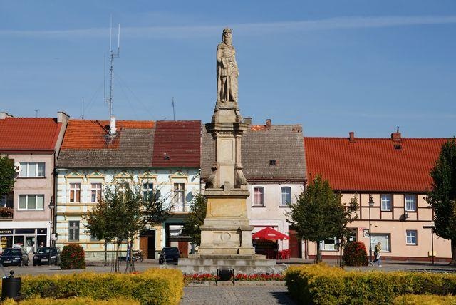 Zwiedzanie zaczęliśmy od rynku. W jego centralnej części stoi pomnik Mieszka I, który podobno nad Jeziorem Mieszkowickim miał założyć pierwszą osadę. Legenda głosi, że podczas objazdu nadodrzańskich grodów władca upolował w tej okolicy dwa niedźwiedzie. Żeby uczcić udane łowy postanowił wznieść gród obronny.