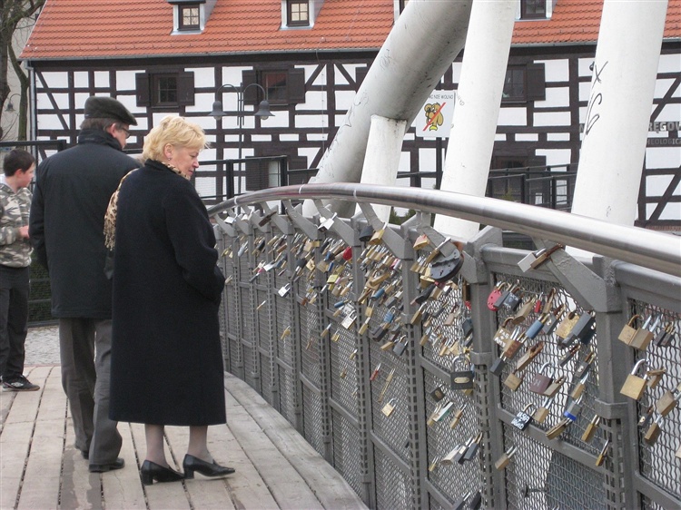 W wielu miastach Europy, w tym i Polski, młodzi, świeżo poślubieni małżonkowie zapinają na moście kłódkę z wygrawerowanymi imionami i datą. Zaraz potem kluczyk od zamkniętej kłódki rzucają do rzeki. Robią to, aby nikt nigdy nie był w stanie go odnaleźć i ich związku „rozpiąć”. Ten nowy, świecki zwyczaj przyjął się i ma symbolizować wieczność nowego związku małżeńskiego. Takie „mosty zakochanych” są już we Wrocławiu, Krakowie, Poznaniu, Łodzi. Jest również w Bydgoszczy. „Mostem Zakochanych” jest kładka dla pieszych między Operą Novą a Wyspą Młyńską. Pierwszą kłódkę zapięli Aleksandra i Artur w dniu swego ślubu 24 października 2009 r. Obecnie na ogrodzeniu kładki wisi już kilkadziesiąt zapiętych kłódek.