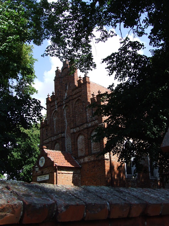 Budowla, z masywną wieżą od północy, wzniesiona została w poł. XIV w. w stylu gotyckim, z cegły. Kościół przebudowano i podwyższono przed 1640 r. We wnętrzu warto zobaczyć gotyckie malowidła ścienne z około 1390 r., z wizerunkami m.in. patronów kościoła i apostołów. Z czasów odbudowy kościoła w XVII w. pochodzą manierystyczny ołtarz główny, ambona i chrzcielnica, natomiast ołtarze boczne z pocz. XVIII w.