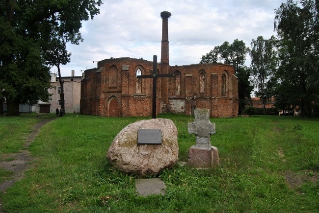 Przy kościele znajdował się ewangelicki cmentarz, na miejscu którego powstał zieleniec z krzyżem i tablicą pamiątkową. Ciekawostkę kościoła stanowi wysoki komin z przyległą przybudówką. Możliwe, że był to system ogrzewania świątyni, chociaż wielu twierdzi, że była tu spalarnia zwłok (krematorium). Kościół uległ zniszczeniu w roku 1945.