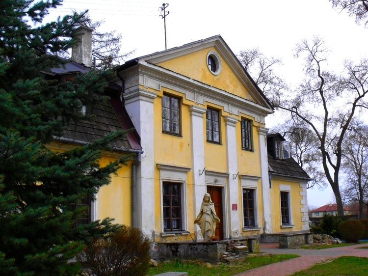 Barokowo-klasycystyczny dwór (1792), obecnie plebania, z parkiem krajobrazowym.