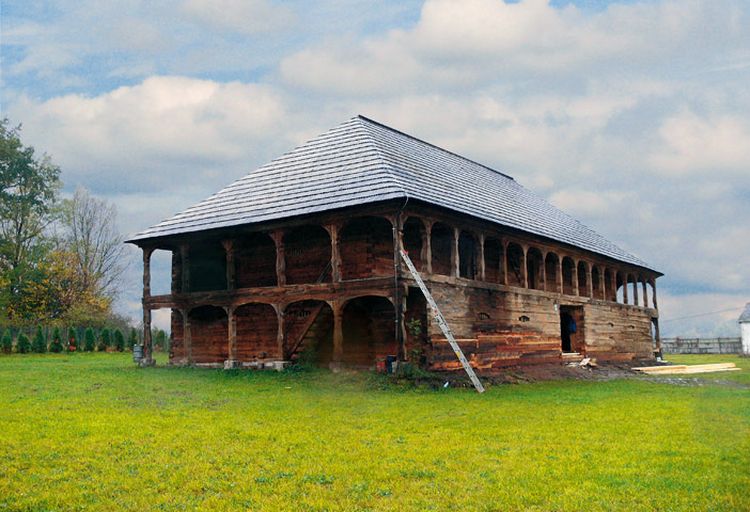 W dawnej Polsce w obrębie zabudowań dworskich nie mogło zabraknąć spichlerza - magazynu na płody rolne. Były to najczęściej drewniane dwu-kondygnacyjne budynki kryte gontowym czterospadowym dachem, które często obiegały ganki wsparte na słupach.