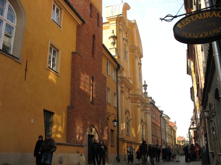 W podziemiach znajduje się grobowiec zmarłego w 1650 r. Adama Jarzębskiego (kompozytor, muzyk i poeta epoki baroku, autor książki "Gościniec albo opisanie Warszawy 1643 r.", będącej pierwszym przewodnikiem po Warszawie). Na filarach bocznych kościoła umieszczone są tablice poświęcone pamięci bohaterów II Wojny Światowej: żołnierzy Brygady Spadochronowej polskich sił zbrojnych w Wielkiej Brytanii (Cichociemni) oraz harcerek polskich poległych w latach 1939-45.