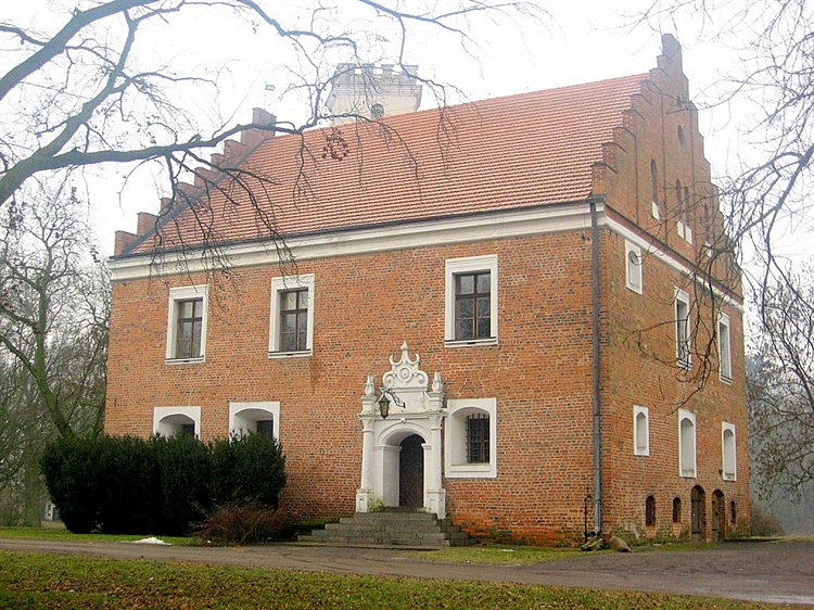 Większość polskich zespołów pałacowych i dworskich to zabytki z XVIII i XIX w. Nieporównanie rzadziej spotykane siedziby szlacheckie z czasów dawniejszych niż wiek XVIII budzą dziś szczególne zainteresowanie. W Grocholinie znajduje się późnogotycko-renesansowy dwór obronny, wzniesiony na początku XVII w. przez jednego z bratanków arcybiskupa gnieźnieńskiego Wojciecha Baranowskiego. Ma zwartą piętrową bryłę ze schodkowymi szczytami, a ponad budowlę wystaje umieszczona w narożniku baszta. Jej zwieńczenie jest neogotyckie, wykonane podczas renowacji w 1836 r. Duże wrażenie robi frontowy portal o formach manierystycznych, ujęty dwiema kolumienkami.