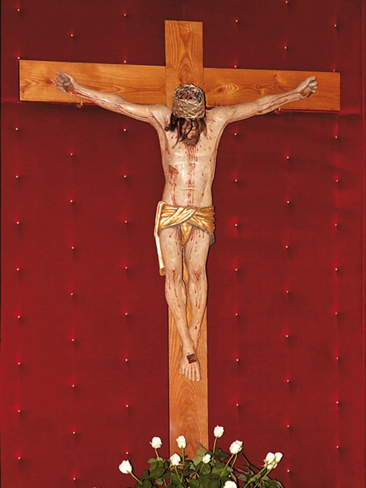 W czasie pożaru Kcyni w 1778 r. spłonął również zbudowany z drewna klasztor karmelitów. Aby zdobyć środki na jego odbudowę, zakonnicy ogłosili zbiórkę datków. Jak głosi legenda, pewna dziewczyna, nie mogąc ofiarować pieniędzy, darowała to, co miała najcenniejszego - swoje włosy, które ścięła i zawiesiła na krucyfiksie, na cierniowej koronie Chrystusa. Włosy niespodziewanie zaczęły rosnąć; by zobaczyć ów cud, do klasztoru przybywali liczni pielgrzymi. Z ich hojnych ofiar możliwe było szybkie ukończenie budowy. Włosy jednak przestały odrastać, obwiniano o to chciwego organistę, który ponoć potajemnie je podcinał i sprzedawał jako lekarstwo.