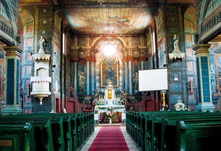 Warto tu wspomnieć, iż na suficie świątyni namalowana jest olbrzymia dziesięcioramienna Gwiazda Marianów, symbolizująca cnoty ewangeliczne Najświętszej Maryi Panny.
