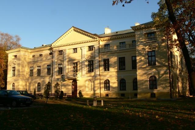 Barokowo-klasycystyczny pałac (XVII w., przebud. XIX w.) z parkiem.