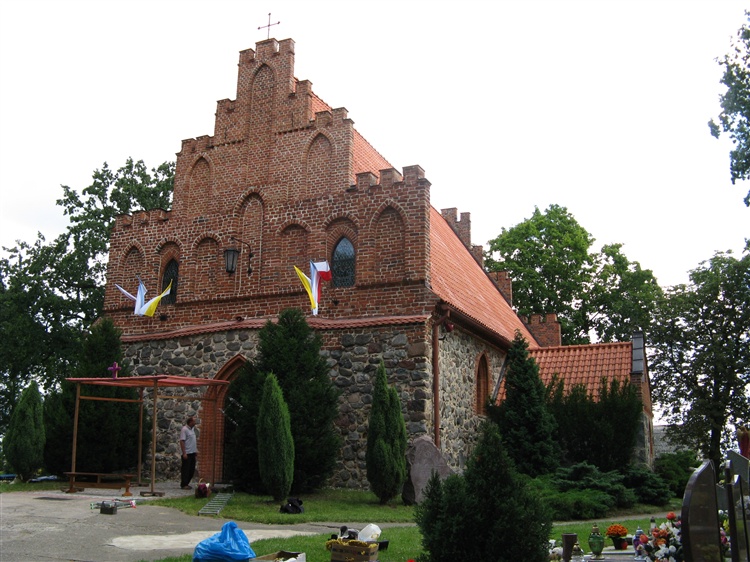 Kościół został wybudowany po roku 1300, a z roku 1319 pochodzą pierwsze o nim pisane wzmianki. Pierwotnie nosił wezwanie św. Wawrzyńca. Zbudowany głównie z polnych kamieni - cegieł użyto tylko w szczytach, portalach, narożach i wykończeniach otworów okiennych. Od około 1670 roku kościół nosi wezwanie Wniebowzięcia Najświętszej Maryi Panny.