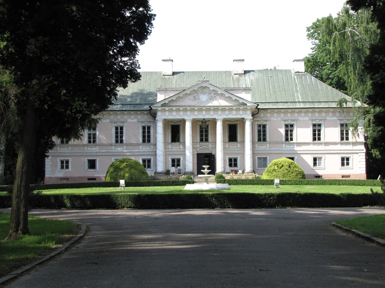 Od wschodu do pałacu przylega rozległy park w stylu angielskim. Założenie parkowe płynnie przechodzi w gęsty las. On też jest wyjątkowy - potężne, wiekowe modrzewie tworzą tu największe na Mazowszu skupisko, chronione jako rezerwat "Modrzewina".