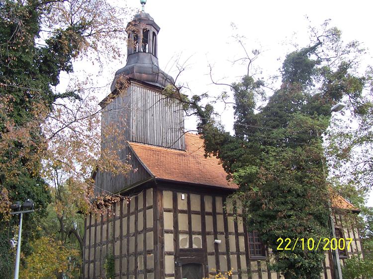 Późnobarokowy, szachulcowy kościół filialny pw. św. Krzyża (1766).